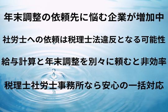 年末調整は、所得税の精算を行う税務業務であり、税理士の独占業務と法律で定められています。